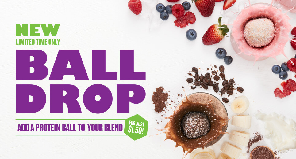 Add a protein ball to your blend for just $1.50! Choose from four popular smoothies that have either a chocolate or white chocolate protein ball blended into it for delicious added goodness! For a limited time.
