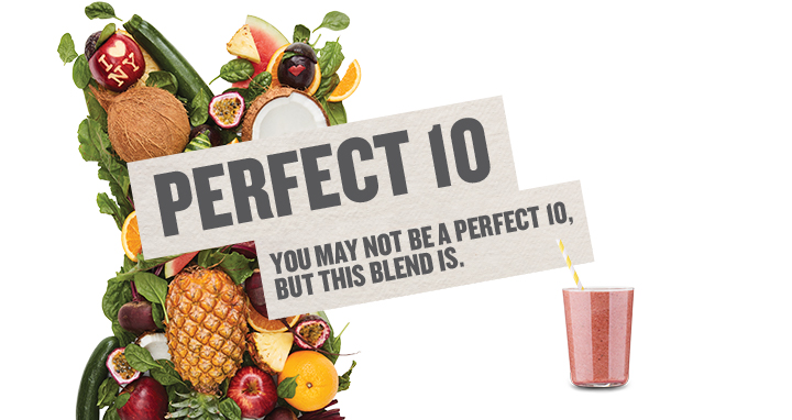 The Perfect 10 Blend provides a unique balance of nutrients, with 9 out of the 10 ingredients being blended whole fruit and vegetables.