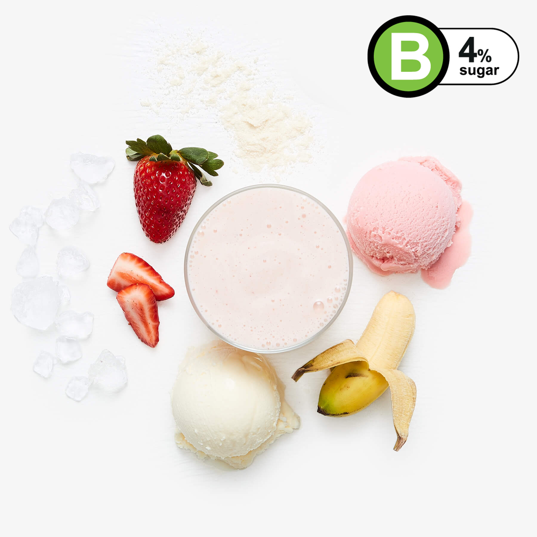 Banana, Ice, Low Fat Milk, Strawberries, Soy, Vanilla Yoghurt & Whey Protein